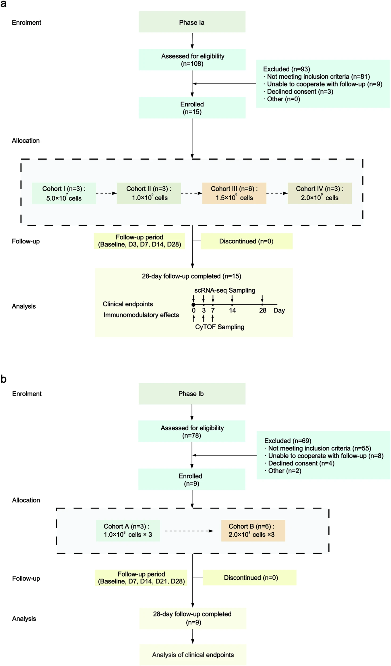 · Ia期:24名患者分為4組,分別接受單次0.5億、1億、1.5億、2億細胞輸注。