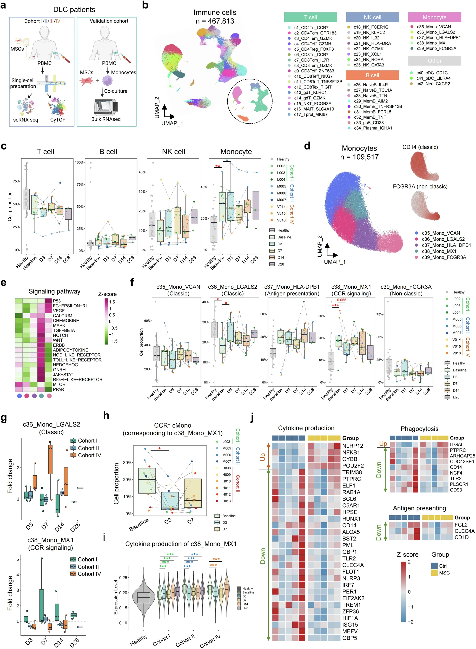 圖:MSC治療下DLC患者其他免疫細胞的變化及其與單核細胞的相互作用