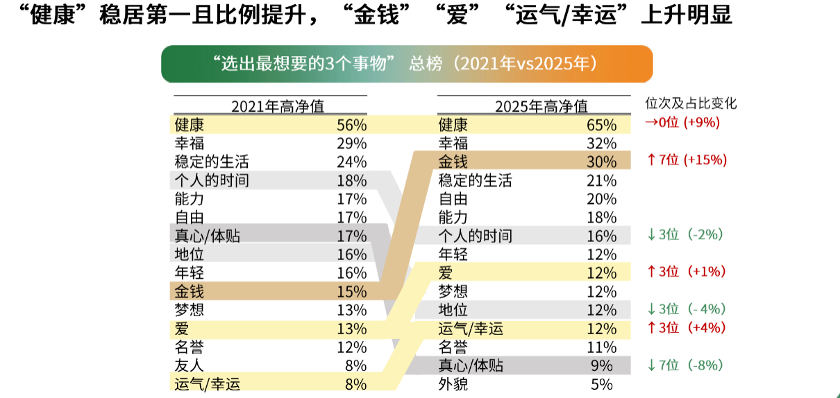 高凈值人群(家庭可支配資產(chǎn)≥600萬(wàn)人民幣)在疫情后經(jīng)濟(jì)不確定性背景下,消費(fèi)重心向健康領(lǐng)域顯著轉(zhuǎn)移,呈現(xiàn)出“穩(wěn)健型享受”與“隱性優(yōu)越感”兩大心態(tài)特征。