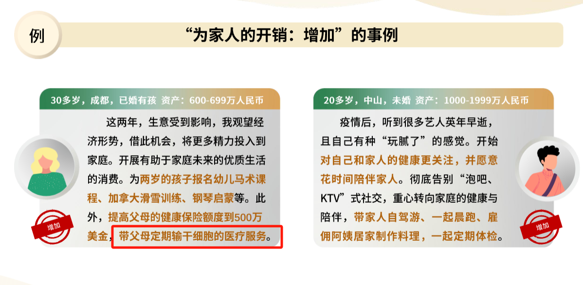 30多歲重慶高凈值人士表示:“疫情后尤其關(guān)注健康,會(huì)定期去注射干細(xì)胞,并提高父母的健康保險(xiǎn)額度。”