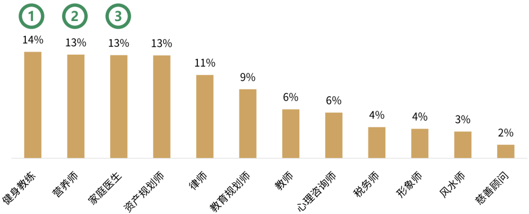 胡潤(rùn)數(shù)據(jù)佐證:健康顧問(wèn)需求中,家庭醫(yī)生、營(yíng)養(yǎng)師等專業(yè)服務(wù)位居前列,支撐日常精細(xì)化保養(yǎng)。